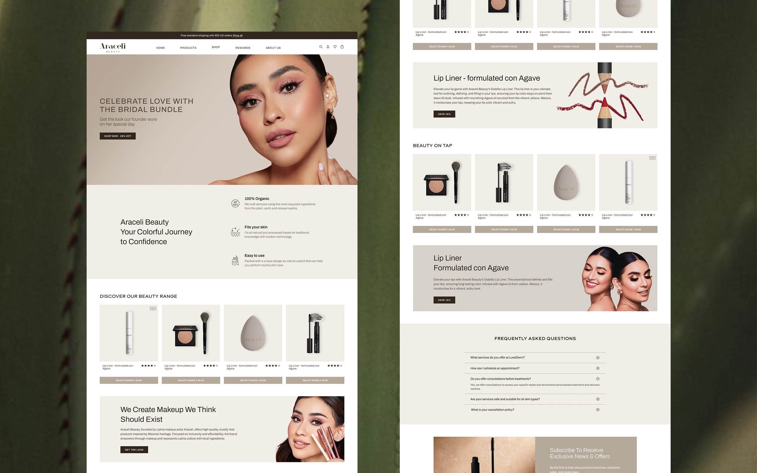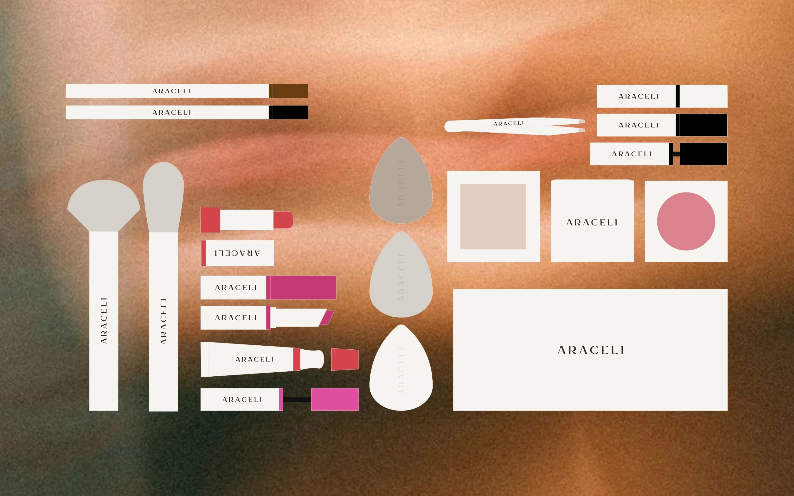 Founded in 2018, Araceli Beauty is an American makeup brand inspired by its founder's Mexican heritage. In 2024, the brand approached me for a complete transformation, shifting from an outdated and flashy image to a clean and effective identity capable of competing with high-end international beauty brands.